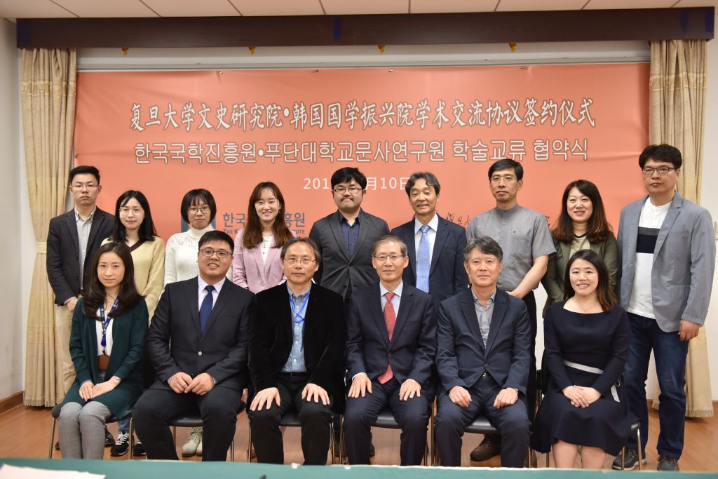 2019年5月10日上午,复旦大学文史研究院与韩国国学振兴院学术交流协议签约仪式在复旦大学举行。韩国国学振兴院院长赵显宰、研究部部长权镇浩、资料部部长林鲁直、研究部责任研究委员崔妵姬、韩国庆尚北道独立运动纪念馆教育文化部长郑义雨,文史研究院副院长李星明、副研究员王鑫磊、朱莉丽、段志强、博士后丁晨楠等出席仪式。赵显宰院长、李星明副院长代表双方单位致辞并签署、交换协议。