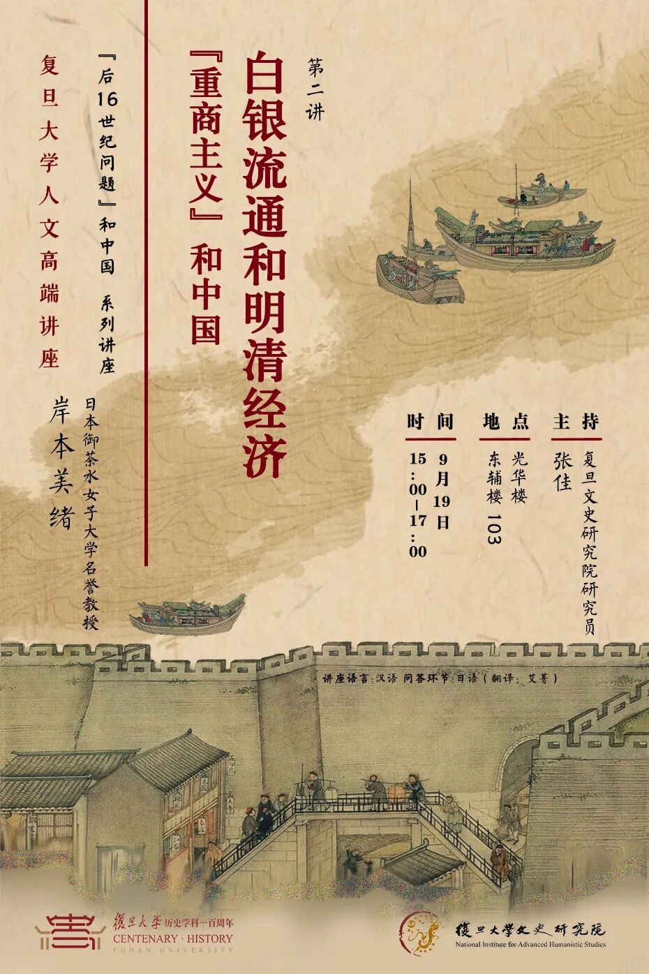 2025年9月19日,岸本美绪教授“‘后16世纪问题’和中国”讲座的第二讲——“白银流通和明清经济:‘重商主义’与中国”,在光华楼东辅楼103报告厅举行,讲座由复旦大学文史研究院研究员张佳主持。