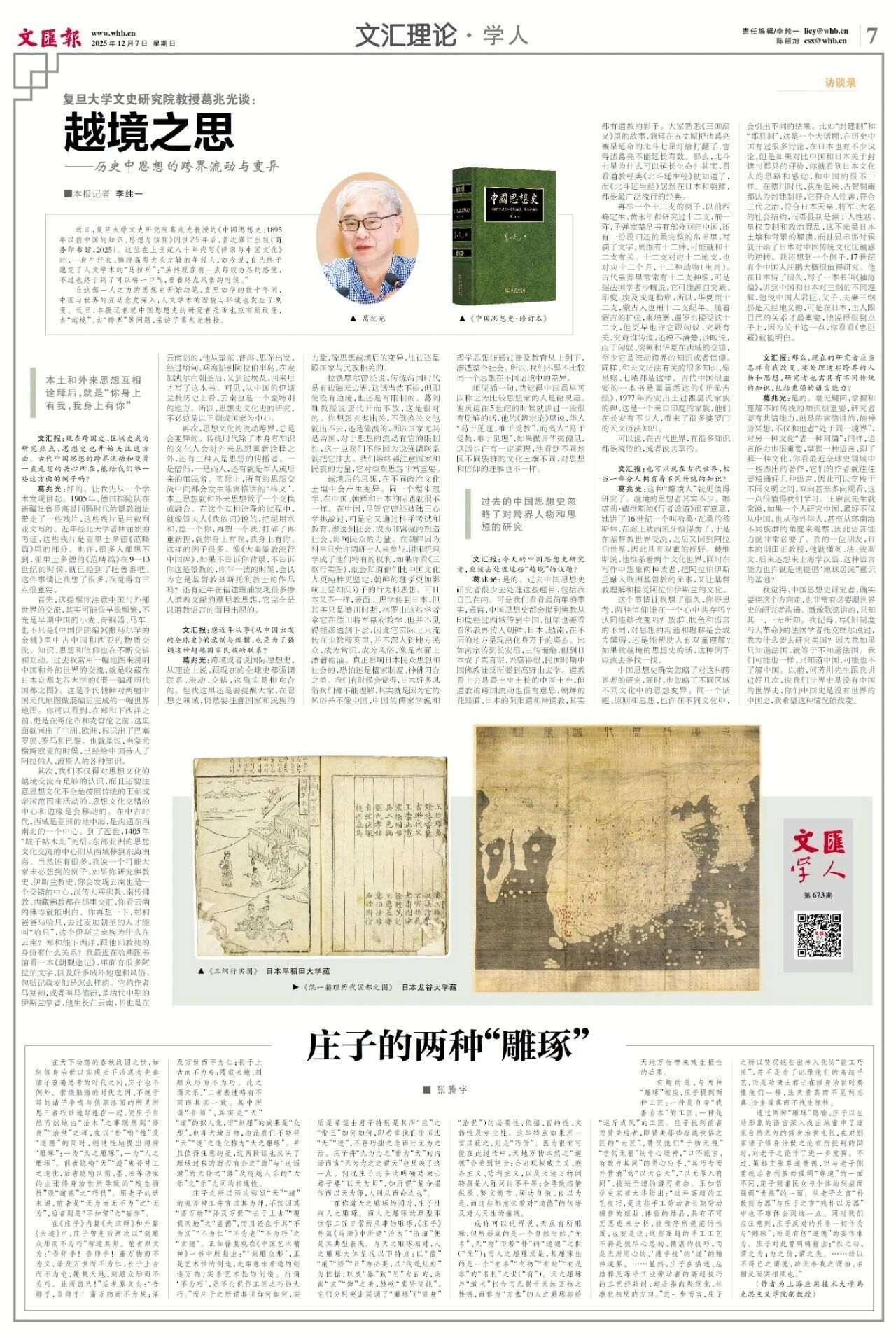 来源:“文汇学人”官方公众号,本文原载于2025年12月7日第673期《文汇报》“文汇理论·学人”版面,原标题为《复旦大学文史研究院教授葛兆光谈:越境之思——历史中思想的跨界流动与变异》